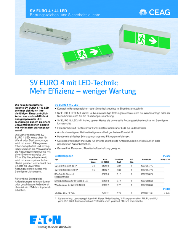 CEAG 40071354776 Oznakowanie drogi awaryjnej z podświetleniem LED Montaż sufitowy, Montaż łańcuchowy, Montaż ścienny na