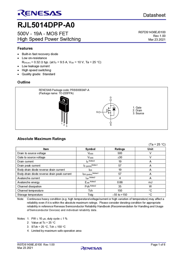 Nch Power MOSFET 500V 19A 400mohm TO-220F