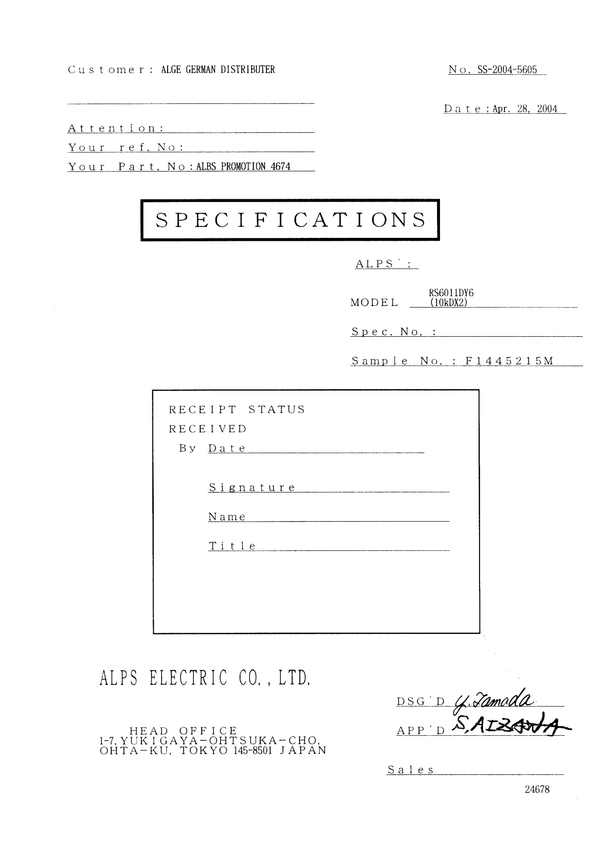 Potencjometr suwakowy do miksera ALPS 402126, 10 kΩ, stereo