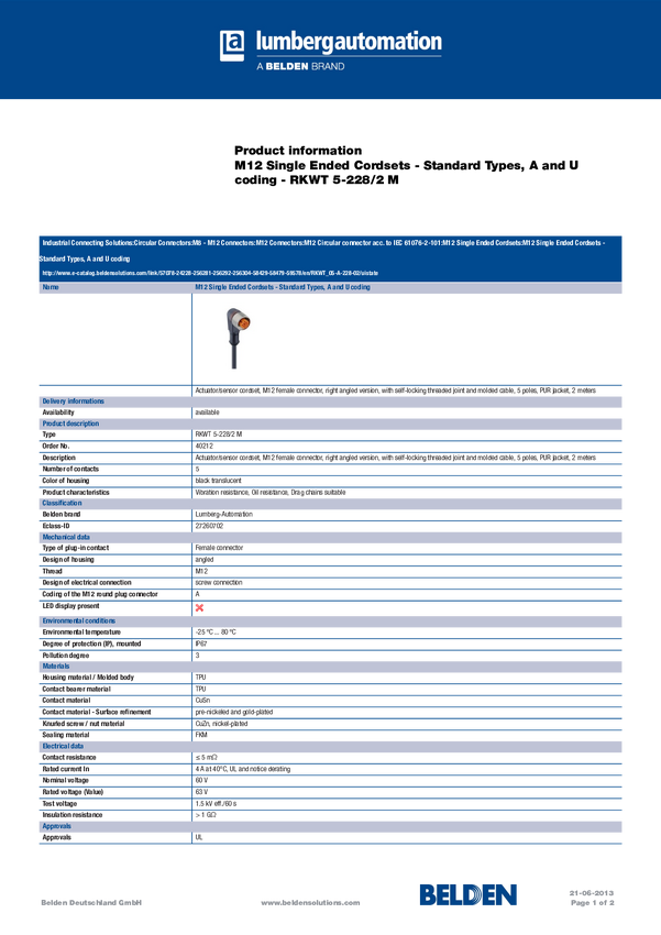 Przewód połączeniowy do czujników/elementów wykonawczych, złącze M12 Lumberg Automation RKWT 5-228/2 M 40212-10 10 szt.
