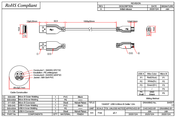 Renkforce Kabel USB USB 2.0 Złącze męskie USB-A, Złącze męskie USB Micro-B 1.00 m czarny oplot SuperSoft RF-4032111