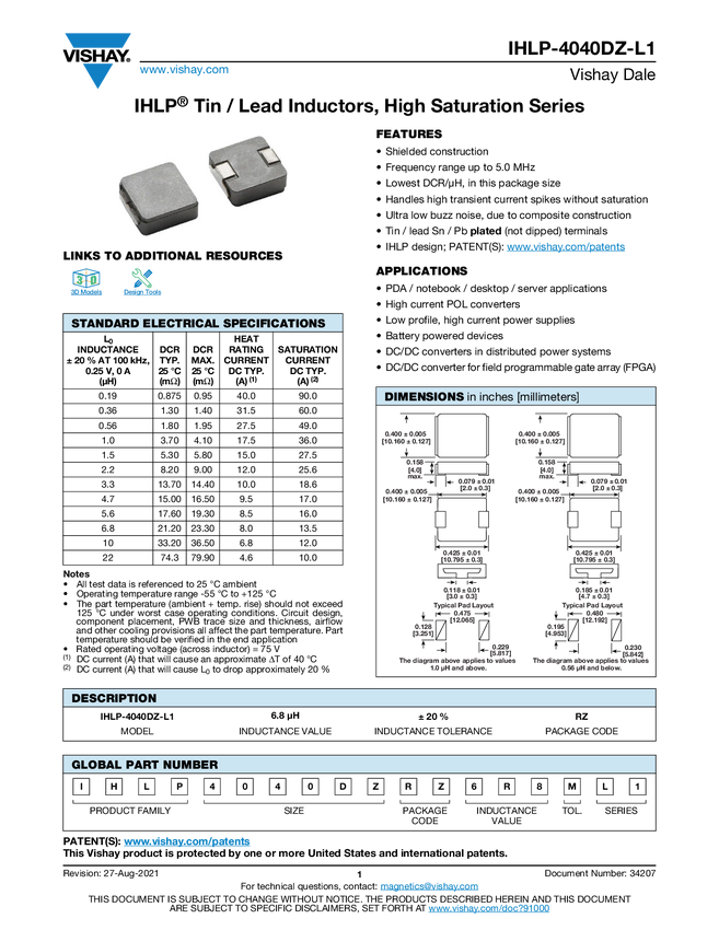 IHLP® Tin / Lead Inductors, High Saturation Series