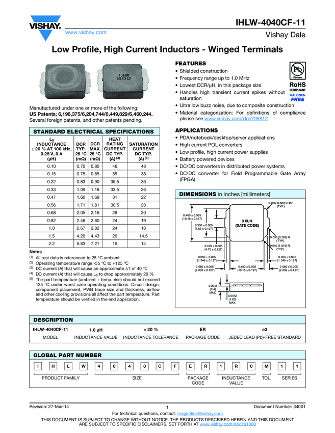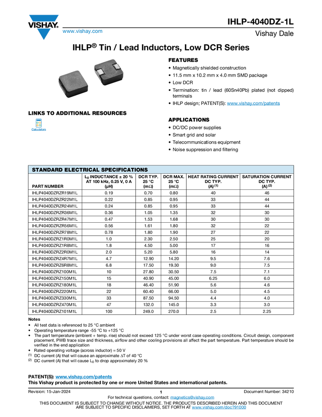 IHLP® Tin / Lead Inductors, Low DCR Series