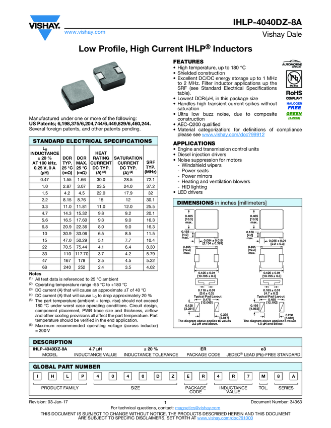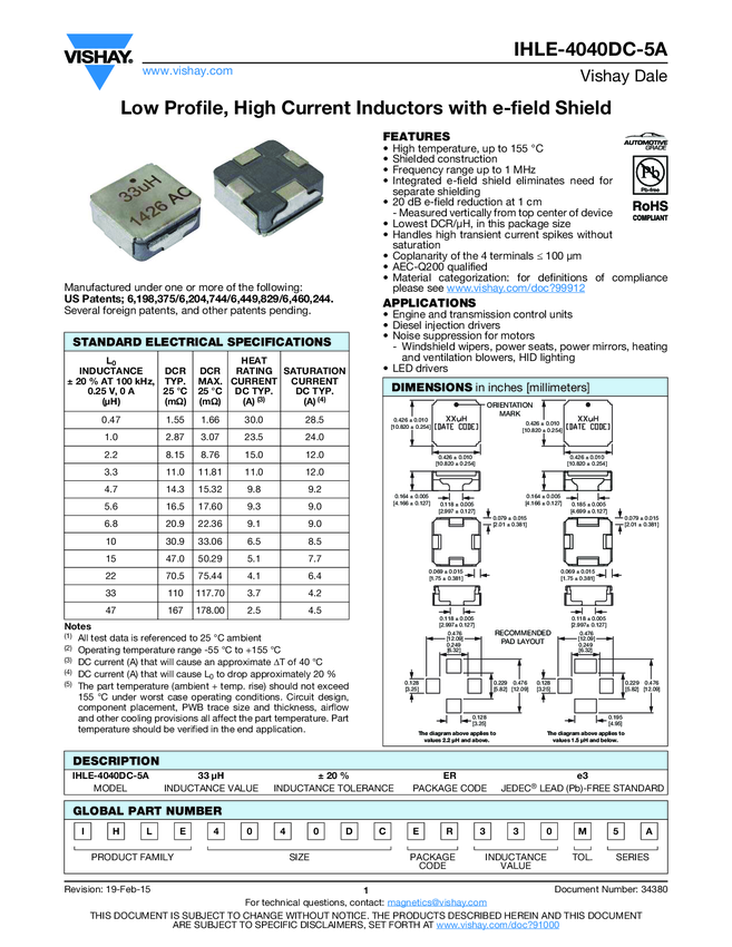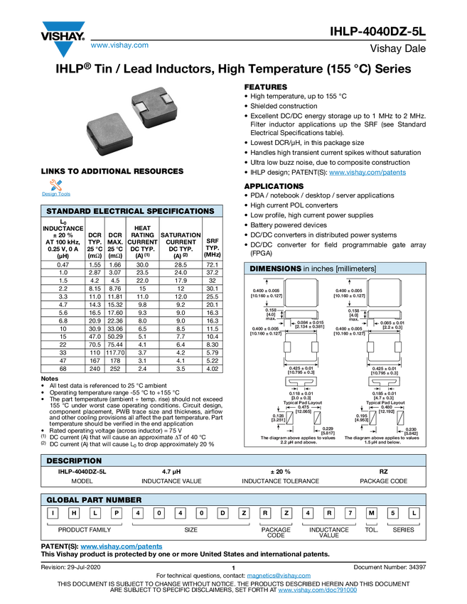 IHLP® Tin / Lead Inductors, High Temperature (155 °C) Series
