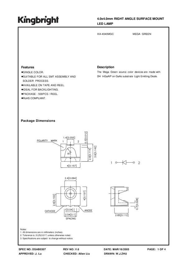 Dioda LED; KA-4040SYSK; SMD; 4040; żółty; 2-2,5V; 100-250mcd; 120*; 4x3,6x4mm; SMD; KINGBRIGHT ELECTRONIC; RoHS