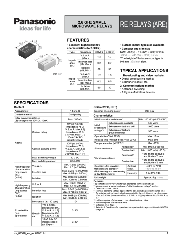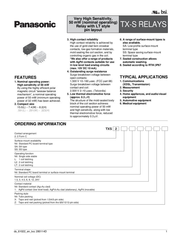 Electromechanical Relay DPDT 1A 4.5V 405Ohm SMD