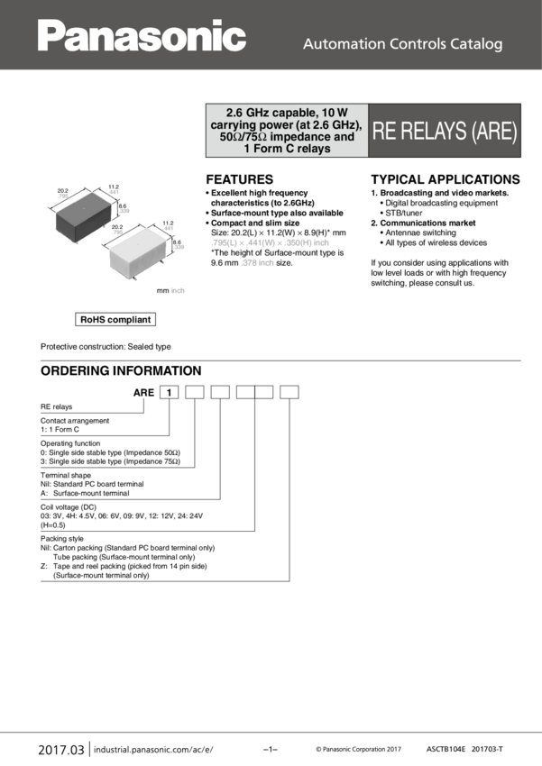Electromechanical Relay SPDT 0.5A 9VDC 405Ohm Surface Mount
