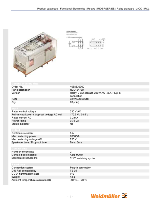 Electromechanical Relay DPDT 8A 230VAC Through Hole