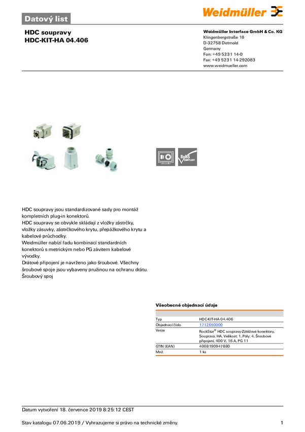 Weidmüller HDC-KIT-HA 04.406 Zestaw złączy męskich 1 szt.