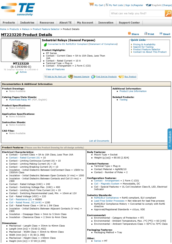 Electromechanical Relay 3PDT 20A 220VDC 40KOhm Plug-In