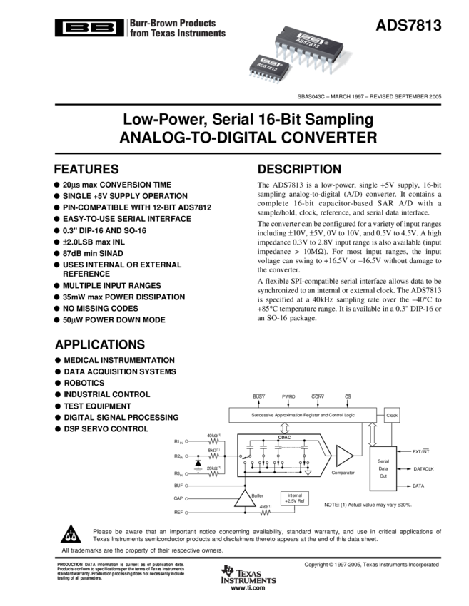 ADC Single SAR 40ksps 16-bit Serial 16-Pin SOIC T/R