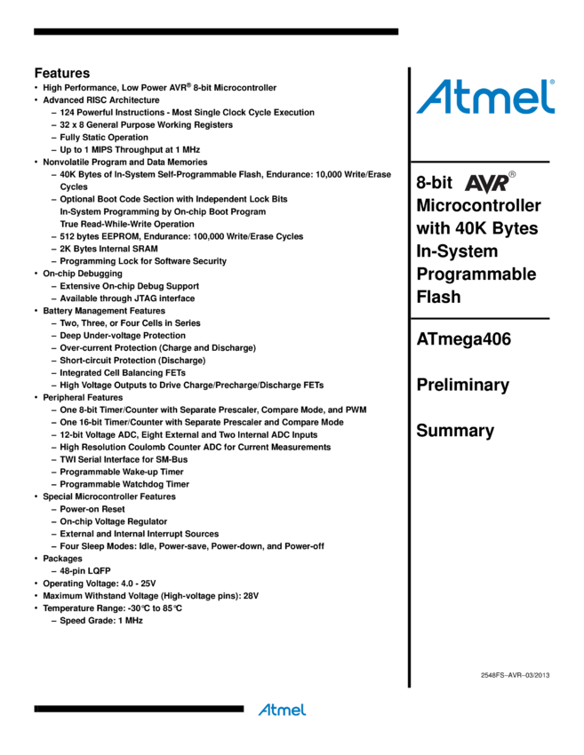 8-bit AVR Battery Management Microcontroller with 40KB Flash, 2-4 cells in series