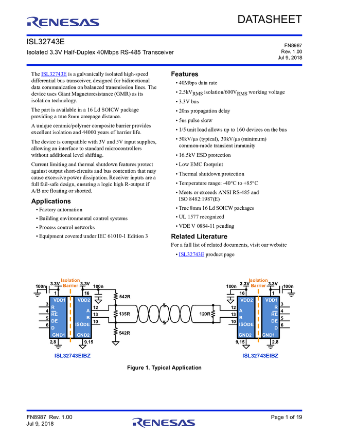 Isolated 40Mbps RS-485 PROFIBUS Transceiver