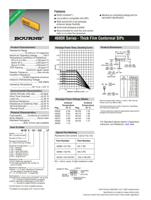 Res Thick Film NET 15 Ohm 1 Ohm 1W ±250ppm/°C ISOL Conformal 8-Pin SIP Pin Thru-Hole Bulk
