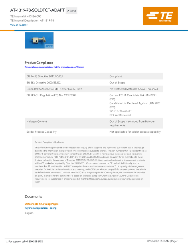 TE Connectivity TE RAY Application Equipment General Purpose 413186-000