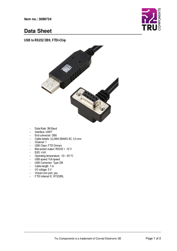 TRU COMPONENTS TC-KW-413 Konwerter szeregowy USB, RS-232 Ilość wejść: 1 x Ilość wyjść: 1 x 1 szt.