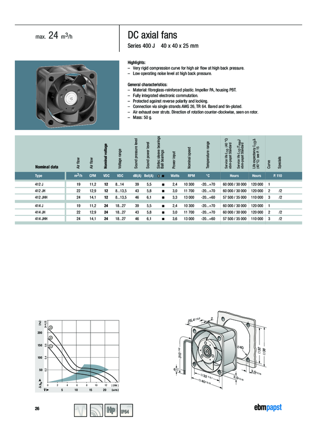 DC Fan Ball Bearing 24V 2.4W 10300RPM 11.18CFM 39dB Flange Mount