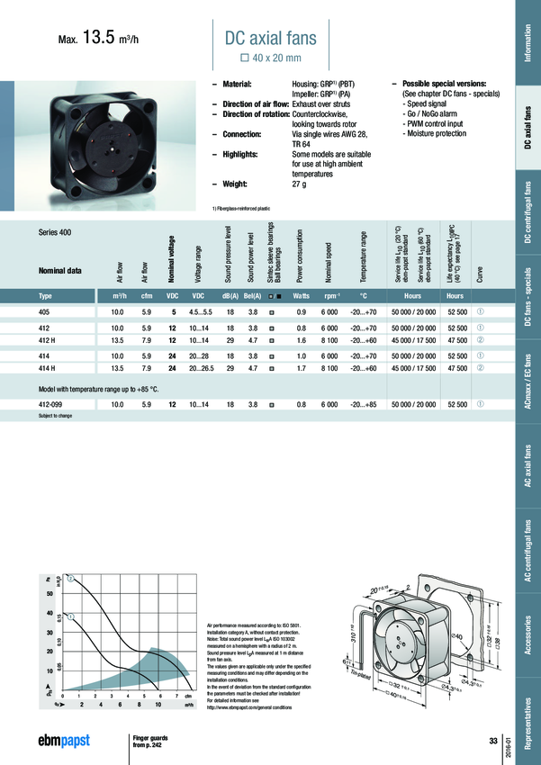 DC Fan Sintec-Sleeve Bearing 24V 1.6W 8100RPM 7.9CFM 29dB Flange Mount
