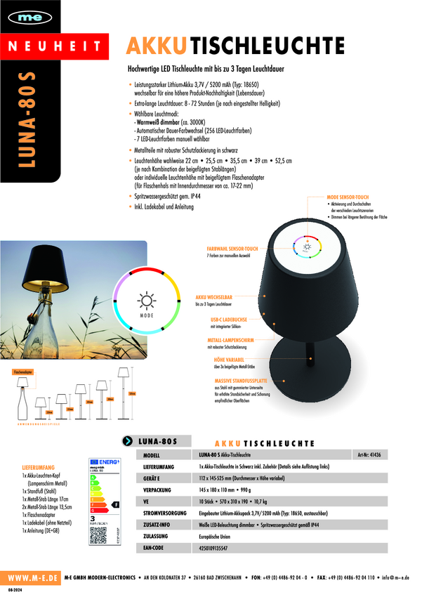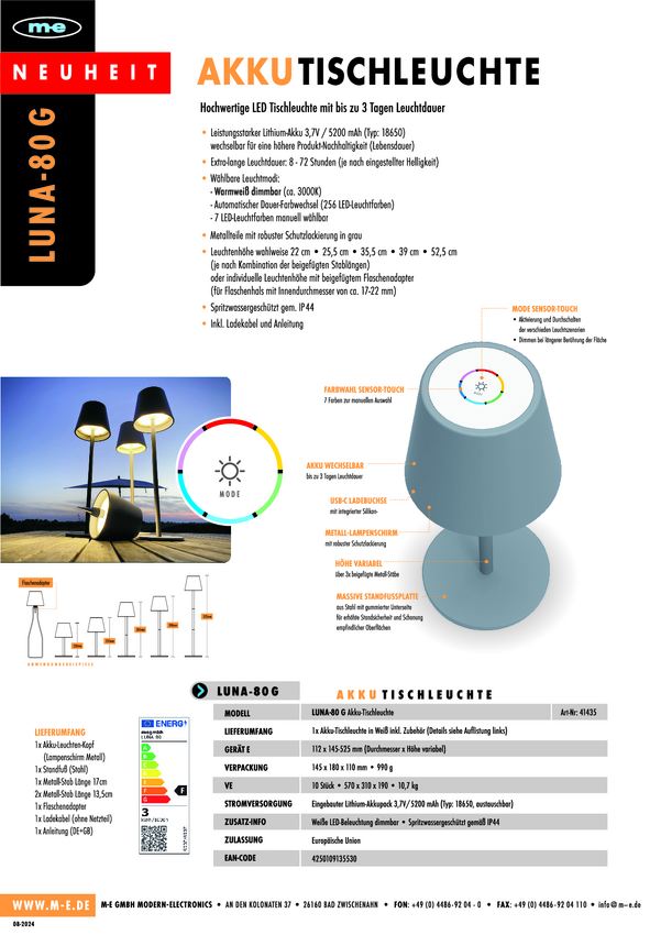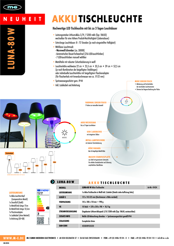 Akumulatorowa lampka stołowa m-e modern-electronics LUNA-80 W 41434 LED wbudowany na stałe 3 W biały