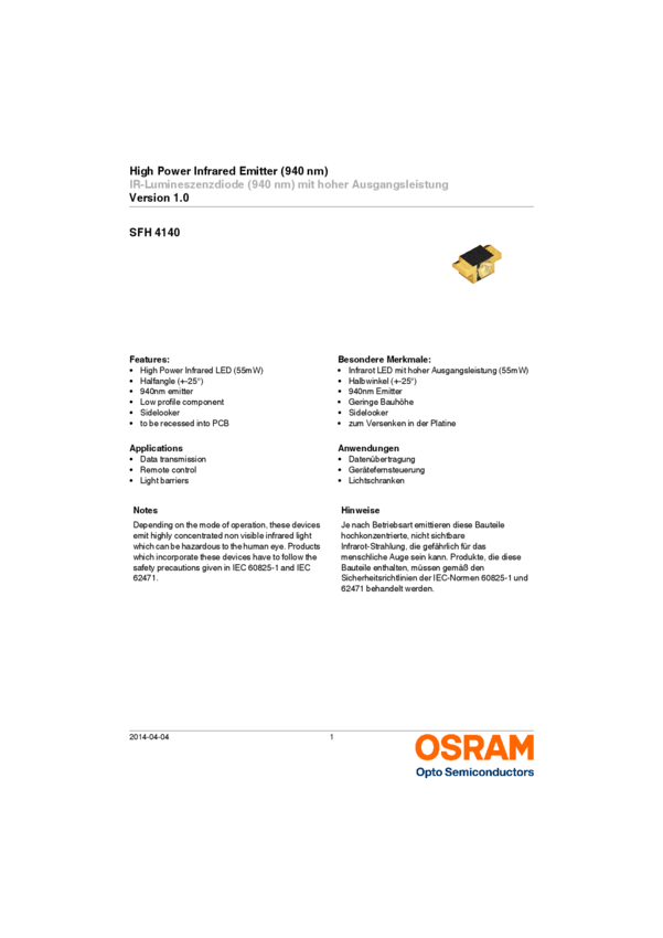 LED IrLED 950nm Chip LED 2-Pin SMD T/R