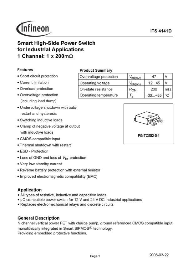 Power Switch Hi Side 1.4A 5-Pin(4+Tab) TO-252
