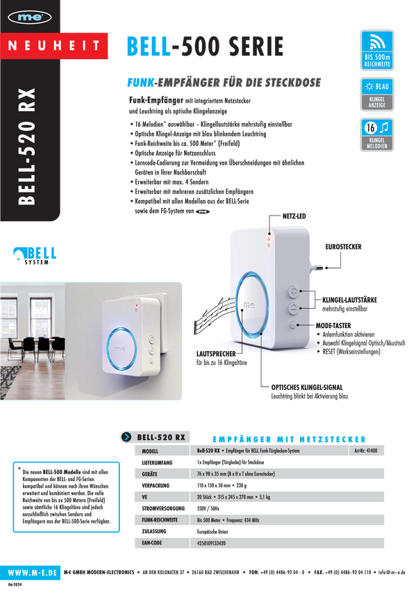 Odbiornik m-e modern-electronics BELL-521 RX, 434 MHz, 500 m