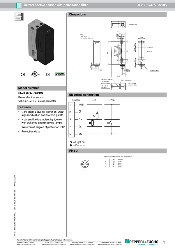 Czujnik dyfuzyjny Pepperl+Fuchs RLK23-8-H-500-RT/31/116 419484 Przełącznik (Jasność / Ciemność) 1 szt.
