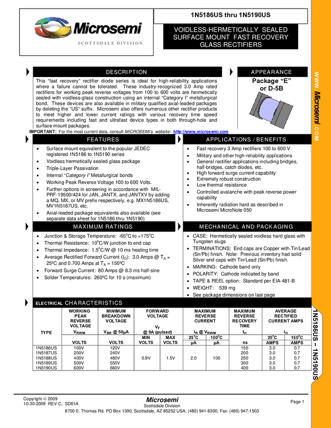 SD61A, 1N5186US_1N5190US, MIL-PRF-19500-424