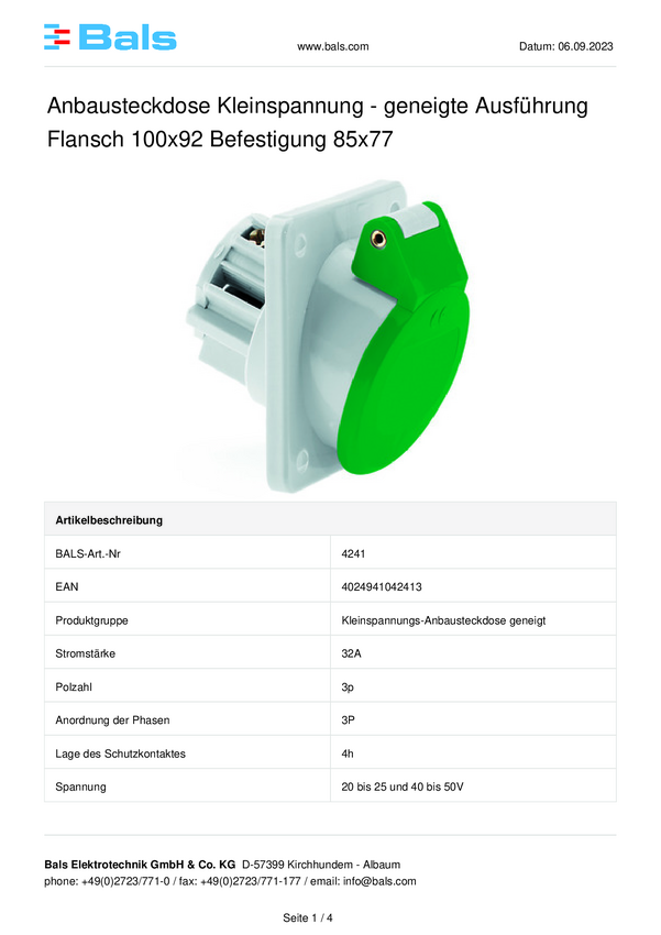 Puszka montażowa CEE Bals Elektrotechnik 4241 32.0 A 50 V
