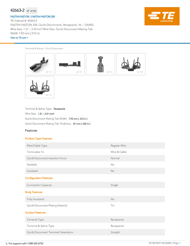 TE Connectivity TE RAY US TFIT Kits 426913-000, 1 szt.