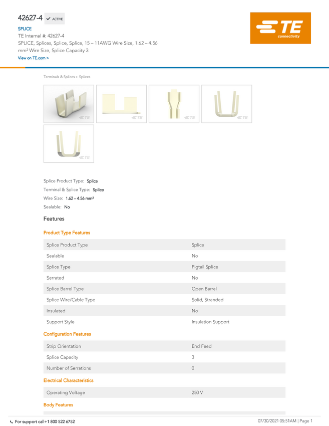 TE Connectivity TE RAY Data Bus Harnesses 426005-000, 1 szt.