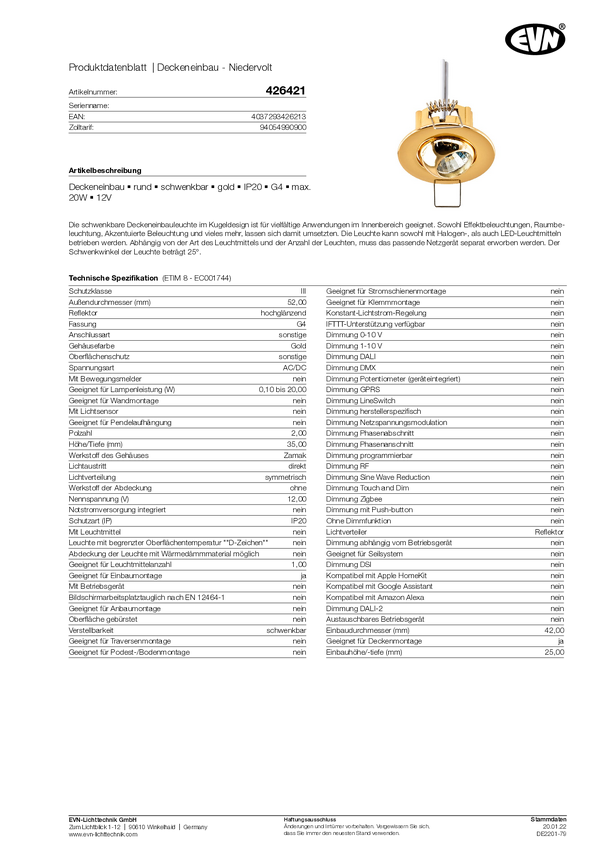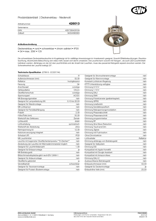 Pierścień montażowy do oświetlenia EVN 426421 426421 20 W