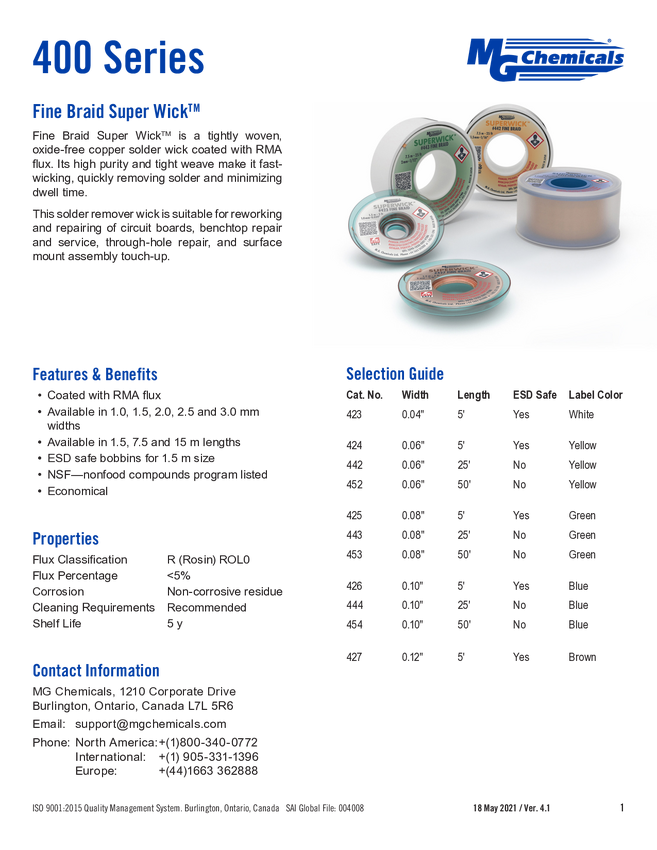 Taśma ssąca; 426MG; Lico; plecionka lutownicza; 2,5mm; 1,5m; bezhalogenkowy, kalafoniowy, RMA, ROL0; ESD; taśma do odsysania; 426; MG CHEMICALS