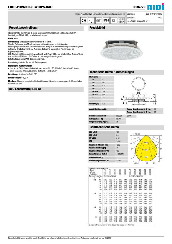 Oświetlenie wewnętrzne LED RIDI 336779 336779 41 W 4260 lm