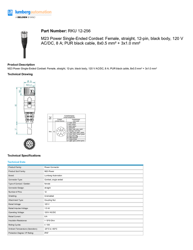 Lumberg Automation 427 Złącze konfekcjonowane czujnika/aktuatora M23 złącze, kątowe 2.00 m Ilość pinów: 12 1 szt.