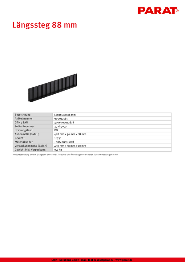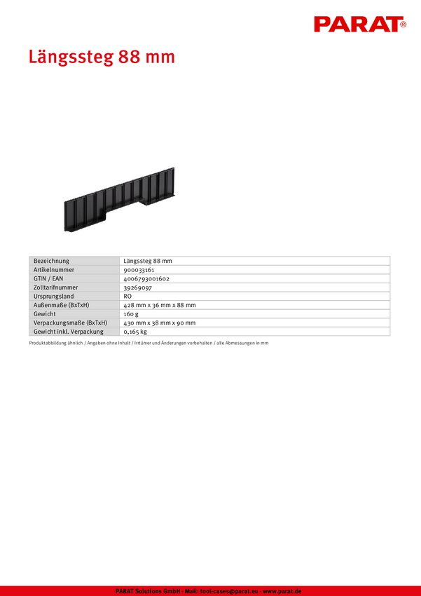 Mostek wzdłużny Parat 900012161 Wymiary: (D x S x W) 428 x 36 x 88 mm
