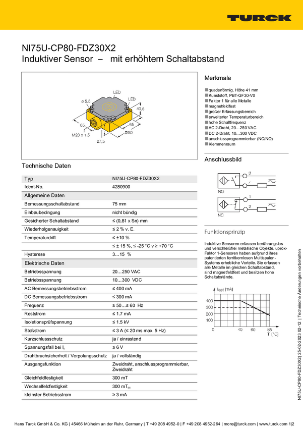 Turck Czujnik indukcyjny nie podtynkowy NI75U-CP80-FDZ30X2