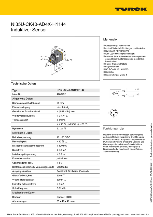 Turck Czujnik indukcyjny nie podtynkowy NI35U-CK40-AD4X-H1144