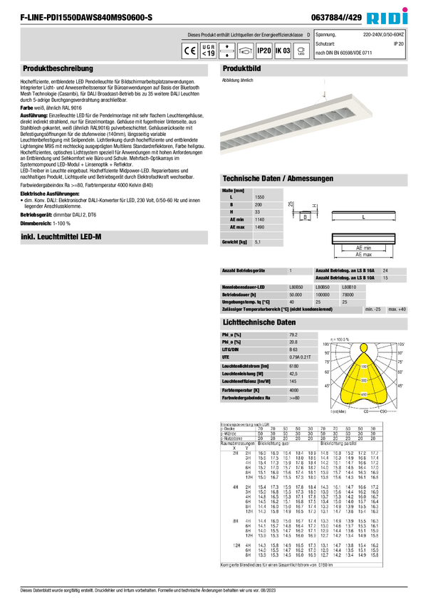 Lampa podwieszana LED RIDI 0637884//429 0637884//429 biały