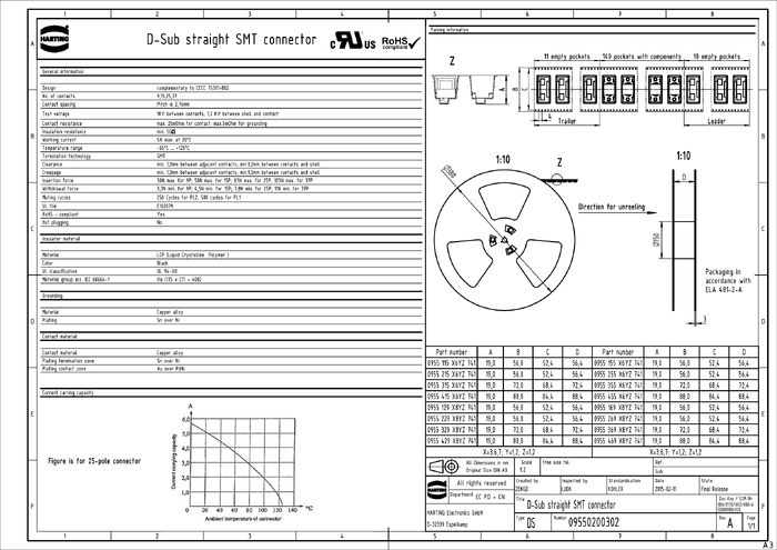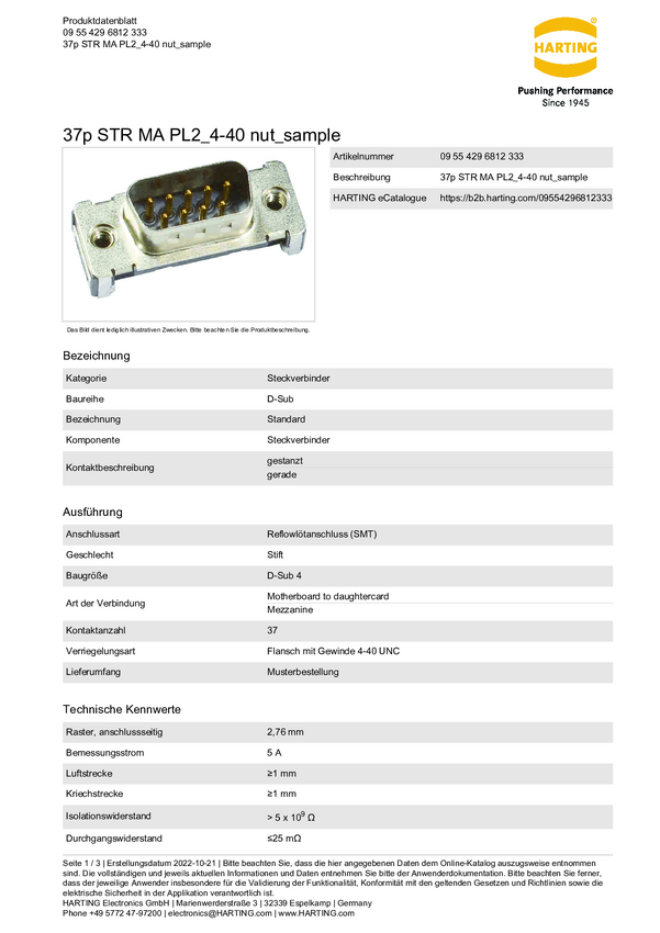 Harting 09554296812333 Złącze męskie 09 55 429 6812 333, styki: 37, 1 szt.