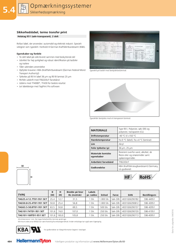 Etykieta do druku laserowego HellermannTyton TAG63.5-50.8TD1-951 SET-951-ML 596-42951, 500 szt.
