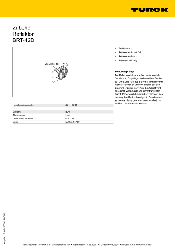 Odbłyśnik Turck BRT-42D 3045006 1 szt.