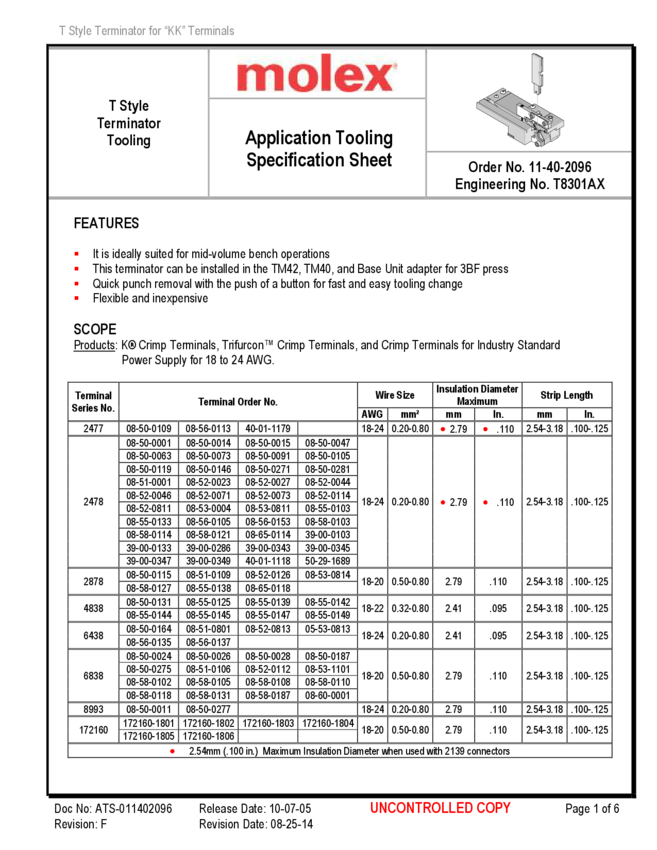 Wire Stop Block for 11-40-2096 T2 Terminator