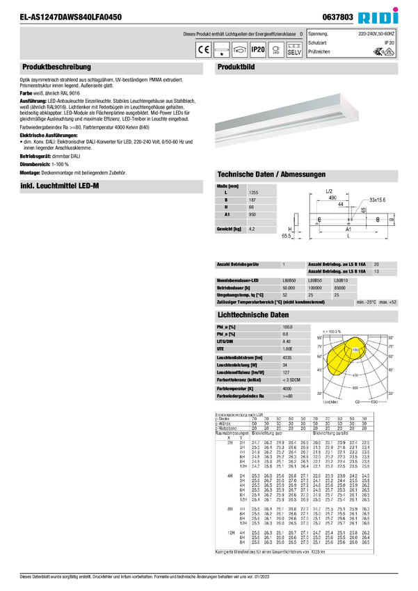 Oświetlenie wewnętrzne LED RIDI 838053 838053 34 W 4340 lm