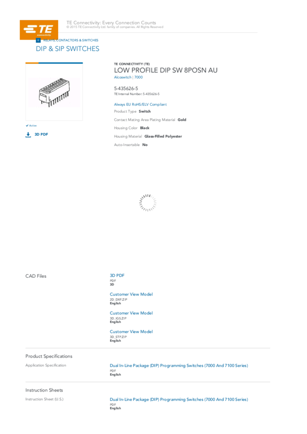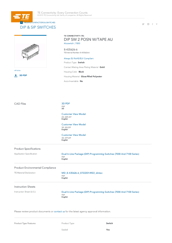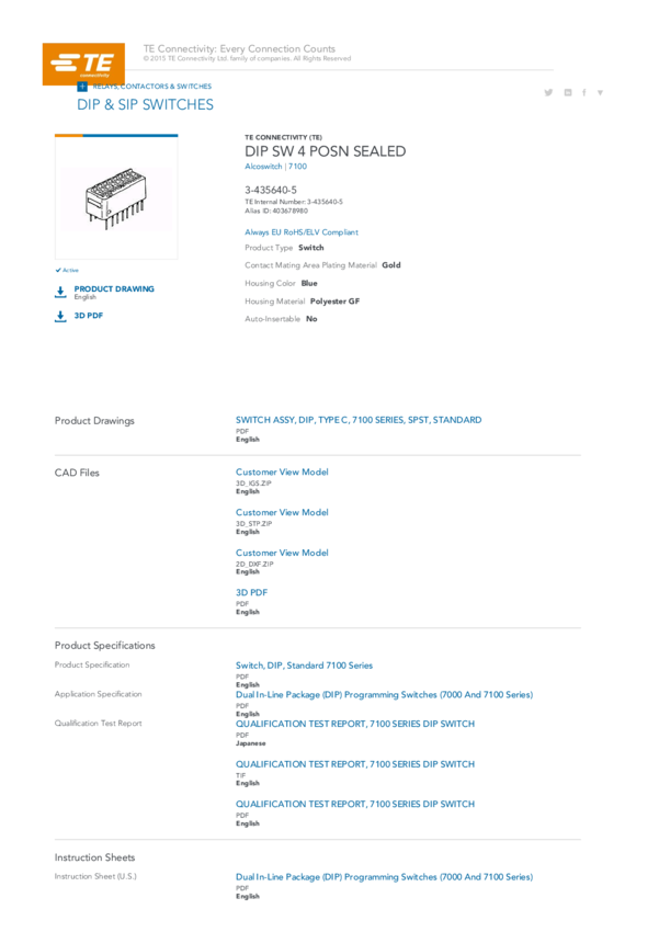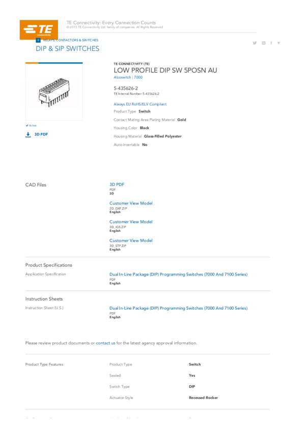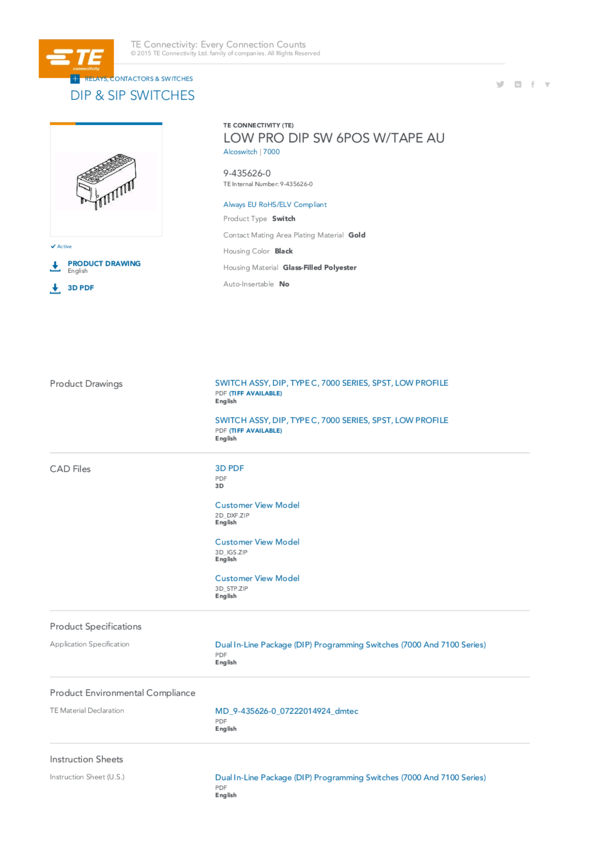 Przełącznik; DIP switch; 6 torów; 2-435668-5; niebieski; THT; h=7,37; 60mA; 5V DC; TE Connectivity; RoHS