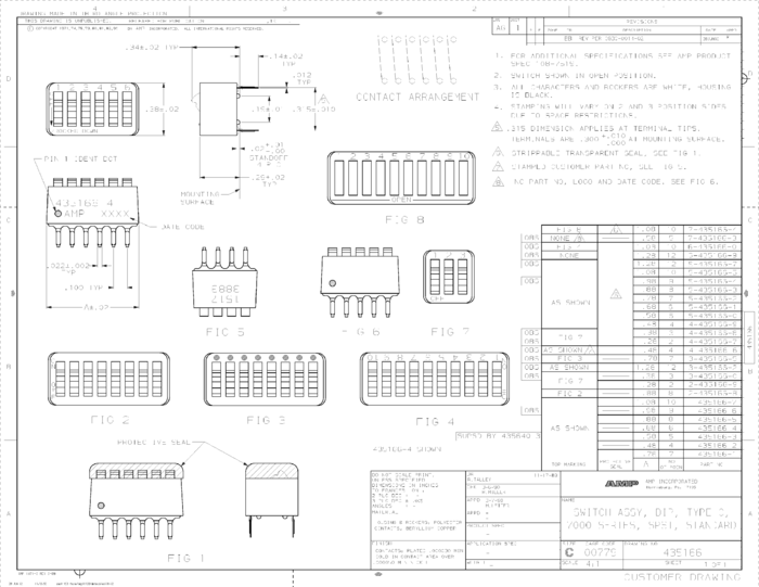 Switch DIP ON OFF SPST 8 Raised Rocker PC Pins 2.54mm Thru-Hole