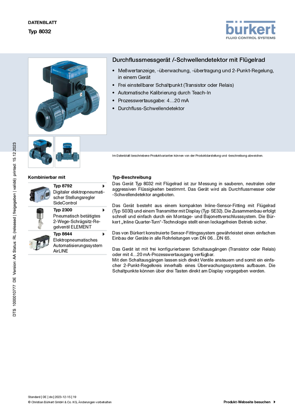 Zawór magnetyczny Bürkert 0330 43604, 0 bar (max)