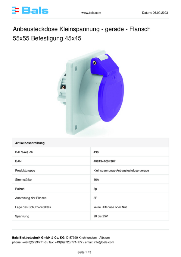 Puszka montażowa CEE Bals Elektrotechnik 436 16.0 A