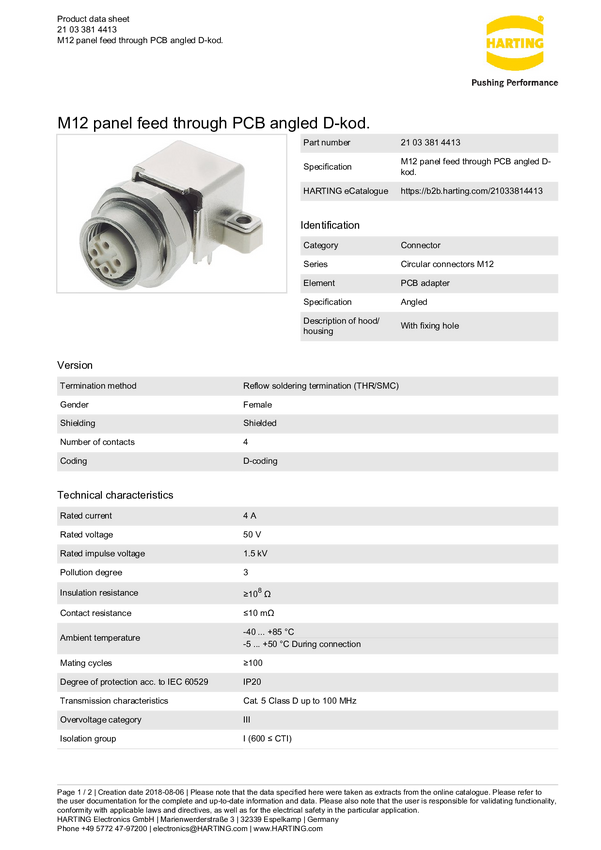Harting 21 03 381 4413 Złącze męskie PCB, 1 szt.