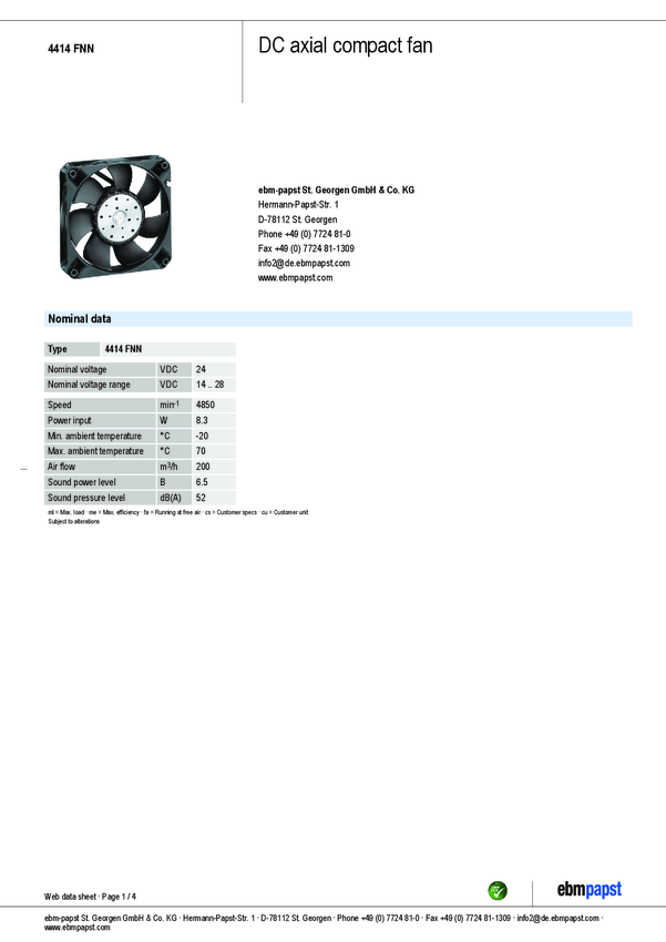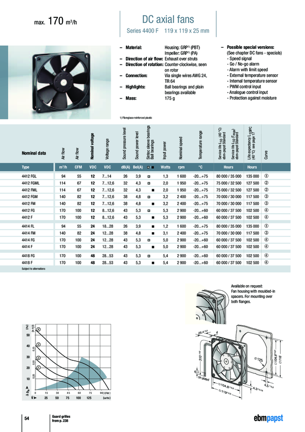 DC Fan Ball Bearing 24V 8.6W 4300RPM 141.3CFM 50dB Flange Mount